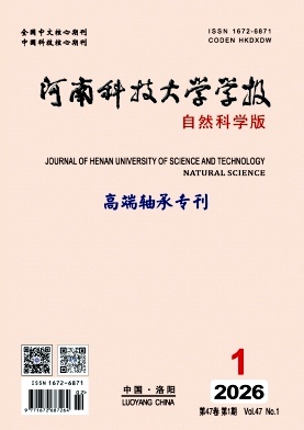 蔡海潮;李康宁;薛玉君;叶军;胡向义;开挖直径为12 m级超大竖井钻机驱动装置主轴承常面临恶劣的服役环境,为探究其复杂接触的特性,研究建立了1.9 m级推力调心滚子轴承的有限元模型,在ANSYS Workbench平台开展瞬态动力学分析,系统研究轴向载荷、转速、曲率半径比和接触角对轴承接触特性的影响以及冲击载荷对轴承滚子与内圈的影响规律。结果表明:转速对轴承接触特性影响较小,轴向载荷与滚子及内外圈的最大等效应力呈近似线性关系;接触应力沿滚子母线分布呈现显著的边缘效应,最大接触应力为2 179.2 MPa。曲率半径比为1.04,接触角为48°时,接触应力分布均匀性得到显著改善,最大接触应力下降为1 720 MPa;冲击载荷脉冲宽度由40 ms减少到20 ms时,滚子速度和加速度响应增幅为3~4倍,而轴向位移主要与脉冲幅度正相关。
